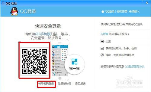 如果是用的QQ登的點(diǎn)擊QQ會(huì)出來二維碼,用手機(jī)打開QQ掃一下就可以登了,要是手機(jī)不身邊的話,就點(diǎn)擊帳號密碼登陸、