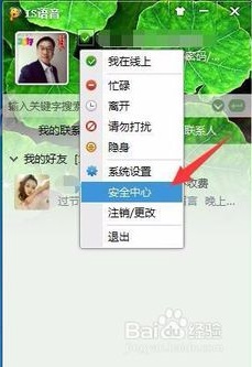 在打開的IS語音面板界面,從狀態(tài)處進(jìn)入 安全中心,