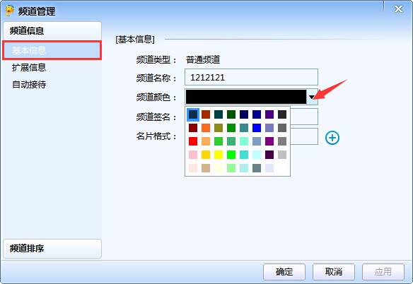 在頻道管理,基本信息當(dāng)中選擇頻道顏色。