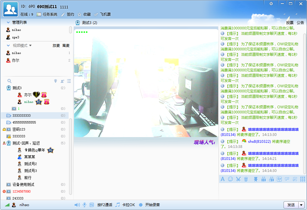 1、IS語音什么狀態(tài)下才稱為在線?用戶登錄后,進(jìn)入頻道后才算在線,只登錄后不進(jìn)入頻道或者進(jìn)入頻道后掉線了,都不會(huì)計(jì)算在線積分。匿名用戶沒有積分。