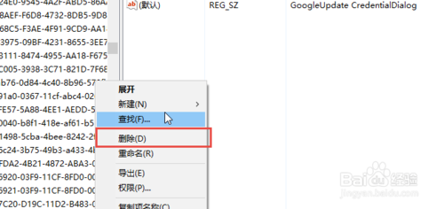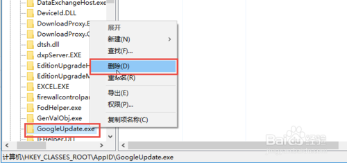 查找到第一個文件GoogleUpdate.exe,在目錄樹中右擊,選擇刪除。詢問是否刪除,選擇是。