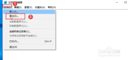 在注冊表窗口,點擊文件,選擇導入,選擇文件保存位置,將注冊表備份起來。