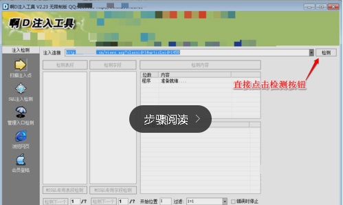 6、進入注入檢測頁面,直接點擊“檢測”按鈕,