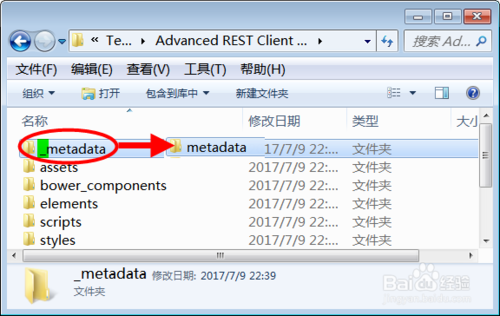 打開剛剛解壓的Chrome插件文件夾,確認metadata文件夾名稱中是否包含下劃線"_",如果有,則去掉