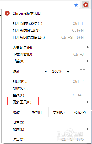 單擊Chrome瀏覽器的菜單圖標,彈出如下截圖1所示的對話框,在對話框中將鼠標移到“更多工具”后,會出現(xiàn)圖2 所示的對話框。