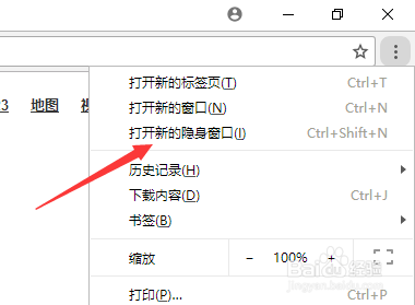 點擊,找到打開新的隱身窗口。