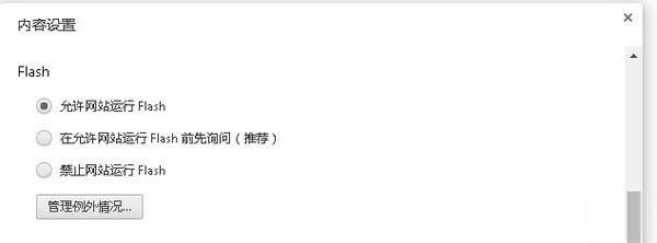 1. 打開 chrome://settings/content,把 Adobe Flash Player 插件設(shè)置更改為"允許網(wǎng)站運行Flash"。