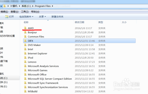 2、重啟完成后進(jìn)入顯卡安裝目錄,默認(rèn)目錄是C:\Program Files,看安裝位置是否還有AMD的文件包,若有請將AMD的文件夾統(tǒng)統(tǒng)刪除。