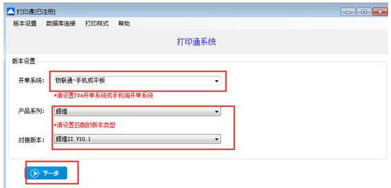 選擇開單設(shè)備、產(chǎn)品系列和對(duì)接版本,然后點(diǎn)擊【下一步】