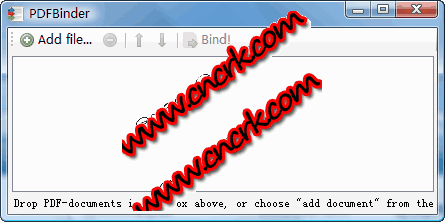 直接按“+”或者拖放PDF進(jìn)入框內(nèi),然后用菜單上的上下箭頭調(diào)整順序,單擊“Bind!”即可開始合并。