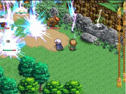 畫面:延續(xù)以往的傳統(tǒng)畫面,人物以Q版可愛型顯示,戰(zhàn)斗畫面、魔法特效以單純顏色和簡(jiǎn)單的特效出現(xiàn)。優(yōu)點(diǎn):不吃CPU資源,計(jì)算機(jī)等級(jí)低還是順。Q版令人不會(huì)感到壓力。