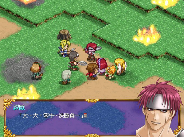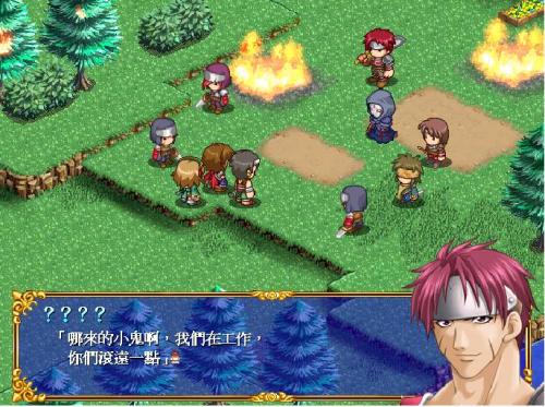 亞迪練習(xí)完揮劍5000下,塔里絲叫他休息兩人就傾談為什么要練習(xí)。傾談中塔里絲有事走開叫亞迪繼續(xù)練習(xí),亞迪由于餓無法練習(xí)下去就去莫?dú)W那里找吃,亞迪正在享受莫?dú)W食物時(shí)賽亞出現(xiàn)嚇不倒了亞迪三人傾談城里的所見所聞,賽亞發(fā)現(xiàn)森林火災(zāi)(塔里絲的家)三人趕到森林發(fā)現(xiàn)一伙人敵人:步下x3紅戰(zhàn)士、弓兵x1謬歐x1(利用莫?dú)W作肉盾,就可以過關(guān))。