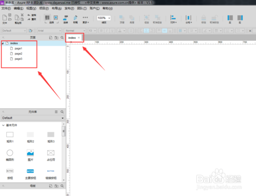 在頁面的工作視圖下面,可以看到屏幕的左下角有一個(gè)“元件庫”的窗口,這個(gè)里面放的都是可以添加到頁面上面的組件: