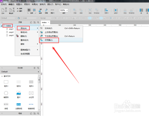 然后對著index點(diǎn)擊鼠標(biāo)右鍵選擇新建子頁面,就可以創(chuàng)建一個(gè)新的頁面了:
