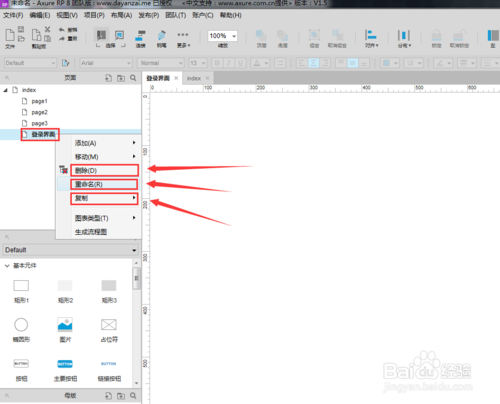 對著頁面進(jìn)行點(diǎn)擊鼠標(biāo)右鍵,然后就會(huì)彈出選項(xiàng)菜單,就可以對頁面進(jìn)行重命名、刪除、復(fù)制的操作了: