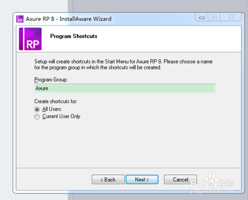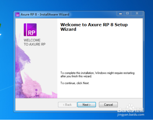下載Axure RP 8.0下載完成后,找到.exe程序,雙擊,會(huì)解壓一會(huì),然后出現(xiàn)下圖界面。