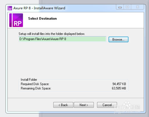 點(diǎn)擊next,出現(xiàn)軟件安裝路徑選擇界面,這里選擇了D盤下的一個(gè)目錄(建議軟件安裝路徑不要選在C盤)