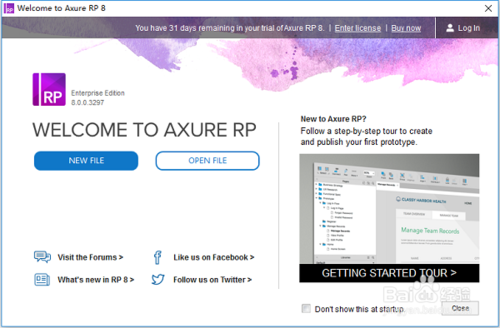 第二步,進(jìn)入軟件。進(jìn)入軟件后會(huì)在歡迎頁中看到正常使用軟件的天數(shù)(31天),然后點(diǎn)擊“Enter license”(進(jìn)入許可)字樣(注:如果第一次打開軟件時(shí)直接關(guān)閉了歡迎頁而沒有激活,不用擔(dān)心,看第三步如何進(jìn)入許可管理頁,否則跳過第三步),如下圖所示: