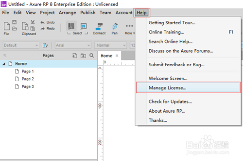第三步,許可管理。首先點(diǎn)擊軟件上方工具欄中的“help”,然后點(diǎn)擊彈框中的“Manage License...”進(jìn)入許可管理頁,如下圖所示: