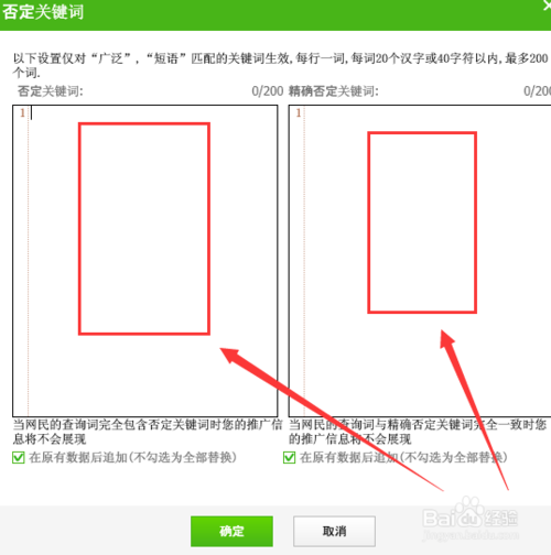 5、打開(kāi)之后如下圖,你可以將你所要否的詞寫(xiě)到里面,無(wú)論是精確性否詞還是詞組性否詞,每行只寫(xiě)一個(gè)關(guān)鍵詞.