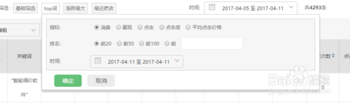 5、點(diǎn)擊確定后,下面就是我們要找到消費(fèi)靠前的關(guān)鍵詞了,是不是很方便?