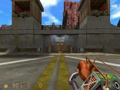 火車終于開到了盡頭,只有下去用腳走路了,左邊有海軍陸戰(zhàn)隊(duì)員出現(xiàn),要采用靈活的游擊戰(zhàn)術(shù)干掉他們,砸開木板進(jìn)屋,找到一個(gè)衛(wèi)兵與你同行。慢慢走到第二個(gè)拐角,前面碉堡里有一臺(tái)重炮封路,如果你傻站著準(zhǔn)沒命。要用盡吃奶的勁跑到碉堡右側(cè),然后摸出手雷扔過去。如果受傷可以爬到氣流門上拿取加血或HEV動(dòng)力電池,進(jìn)氣流門后要馬上開火或扔手雷解決里面的餌雷。之后下樓梯找到另一列小火車,開動(dòng)后注意下落的碎片,不要讓它們把你撞落下去,此外還有警戒的火箭炮也不容忽視,最好蹲下躲過去。在鐵路的轉(zhuǎn)彎處還有一名扛火箭筒的海軍陸戰(zhàn)隊(duì)員,穩(wěn)妥的辦法是停車下去跟這小子單挑。來(lái)到下一扇大門前還要干掉幾個(gè)藤壺怪,然后跳過擋路的綠色箱子。進(jìn)入屋子后按開關(guān)升起大門,繼續(xù)趕路。很快又到了另一扇大門前,如法炮制,先殺人后找開關(guān),其實(shí)你也可以丟下火車一路徒步前進(jìn),只不過要多花一些時(shí)間而已,火車有時(shí)還可以充當(dāng)擋箭牌,遇到火力猛烈的敵人時(shí)只要蹲在控制臺(tái)后即可不戰(zhàn)而過。