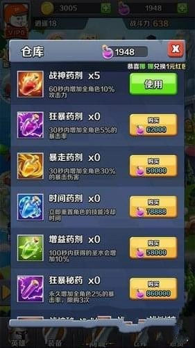 2.裝備升級----窮人福音,30級裝備開始,每10級升級一次,防具副本每天有2次免費次數(shù)、武器副本免費10次、裝備輕松升級50以上不是問題。加戰(zhàn)力比較高。