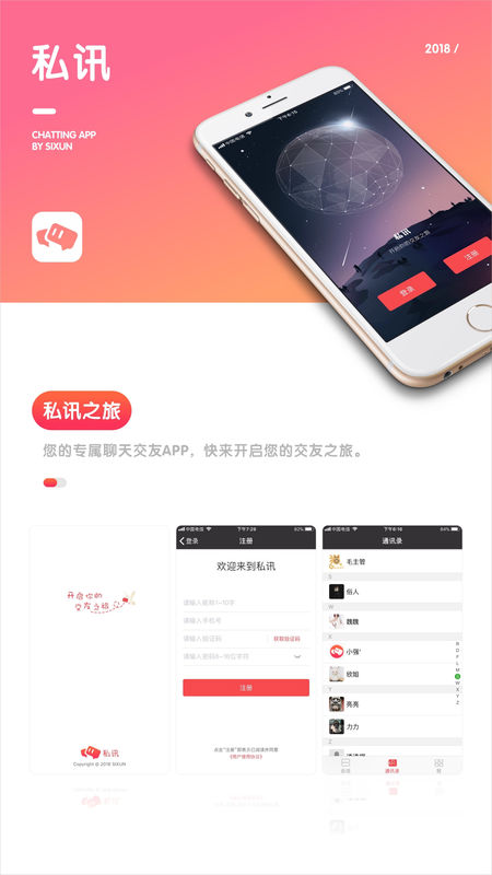 私訊app致力于創(chuàng)建一個(gè)開放、和諧、具有獨(dú)特操作性和功能性的交友平臺(tái)。我們的年輕的團(tuán)隊(duì),具有開放的創(chuàng)新意識(shí),結(jié)合現(xiàn)在社會(huì)的發(fā)展需求,豐富我們的平臺(tái)內(nèi)容,讓大家感受不一樣的聊天樂趣