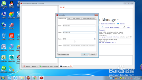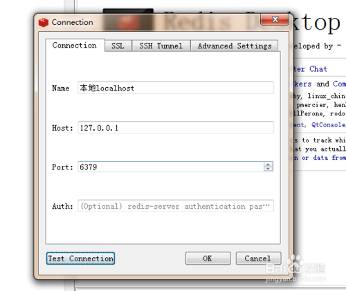 點(diǎn)擊后就會(huì)彈出一個(gè)對(duì)話框,我們?cè)趯?duì)話框中輸入自己的Redis地址、