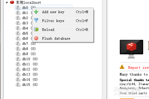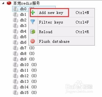 首先啟動(dòng)RedisDesktopManager客戶端,連接到redis服務(wù)器(連接方式這里不再詳細(xì)描述)。選擇其中一個(gè)db,右擊選擇"Add new key"