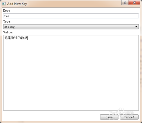 在彈出的對(duì)話框中,我們可以選擇Add new key!再?gòu)棾龅膶?duì)話框中添加一組Key-Value 數(shù)據(jù)進(jìn)去。