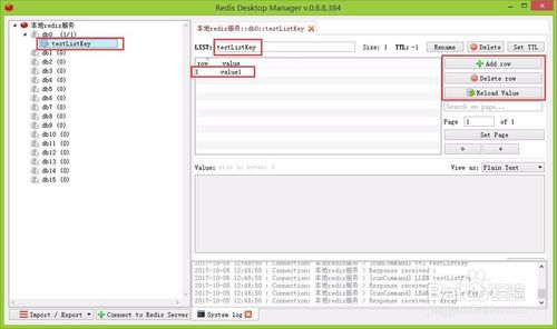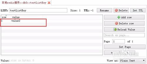 添加完成之后,如果沒(méi)有顯示,點(diǎn)擊Reload刷新,會(huì)在列表中顯示剛剛添加的key,右側(cè)顯示的是list列表值的詳細(xì)信息,在這個(gè)頁(yè)面右側(cè)有3個(gè)按鈕對(duì)應(yīng)value值的新增、刪除和重新加載