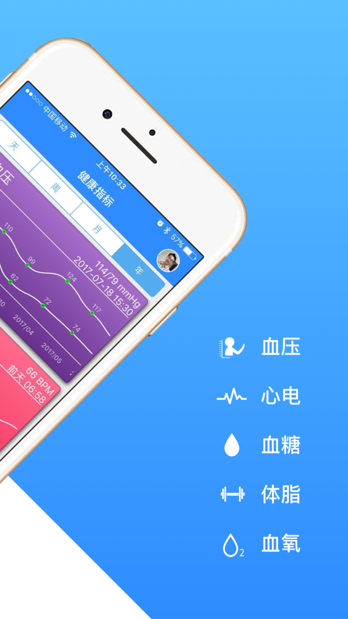 健康指標(biāo)——專業(yè)的健康數(shù)據(jù)報(bào)表展示,形成天、周、月、年的歷史數(shù)據(jù),圖形化每日測(cè)量的健康數(shù)據(jù),健康變化直觀、可視化;