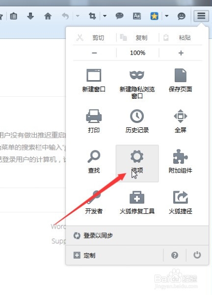 2、在打開(kāi)的菜單中,選擇點(diǎn)擊“選項(xiàng)”菜單。