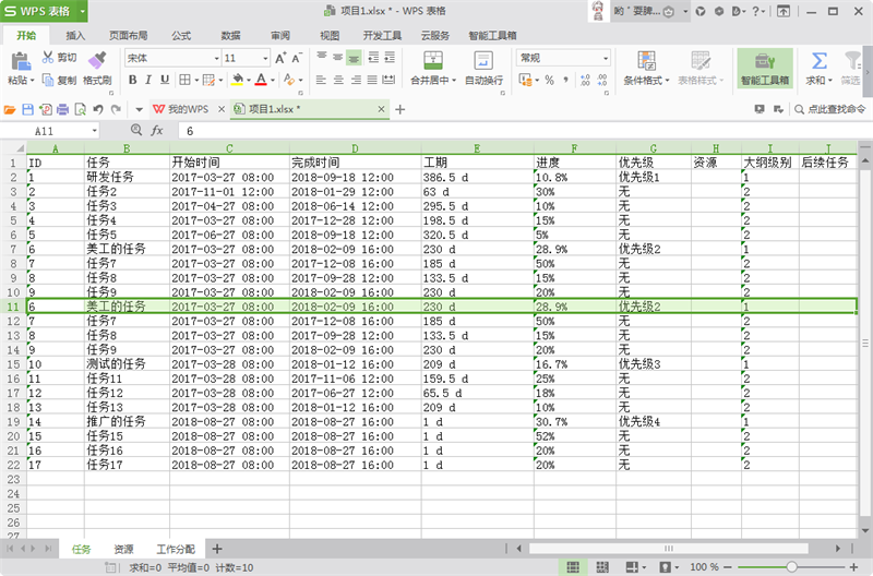 最后,甘特圖就被導(dǎo)入到Excel表格中了,還可以直接在Excel中再次編輯修改里面的信息,十分的方便。