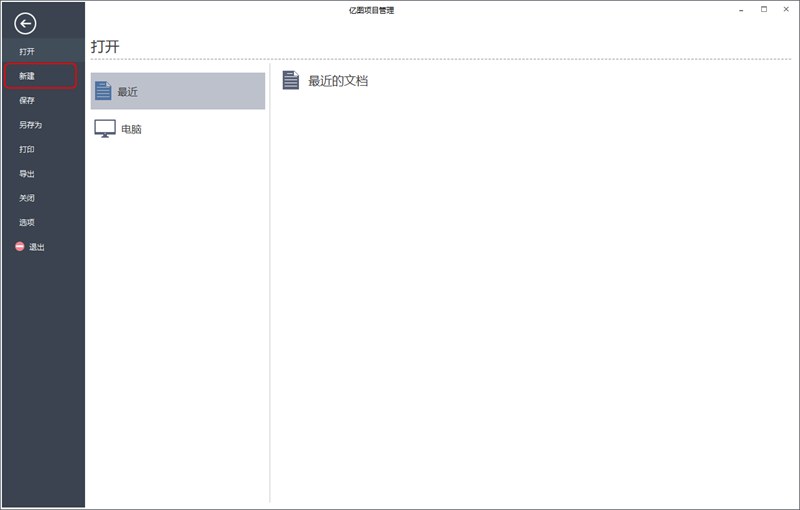 下載安裝好Edraw Project之后,打開軟件,點(diǎn)擊“新建”創(chuàng)建一個(gè)新的空白項(xiàng)目文檔。