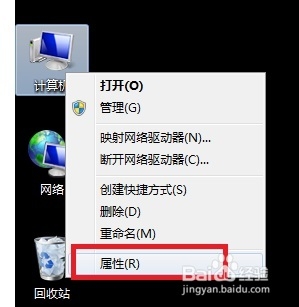 3、在桌面右鍵點(diǎn)擊"計(jì)算機(jī)",選擇”屬性“。