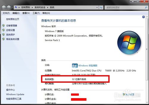 4、進(jìn)入電腦屬性框,可以看到你的系統(tǒng)類型,32位你就選32bit,64位的選擇64bit!