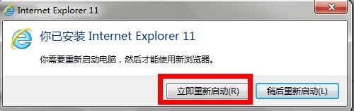 8、安裝完成出現(xiàn)下面對(duì)話框,選擇立即重新啟動(dòng)電腦!完成安裝!重新啟動(dòng)后IE已經(jīng)是11版本了!