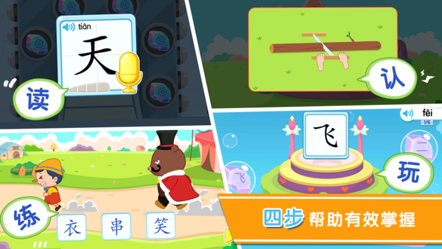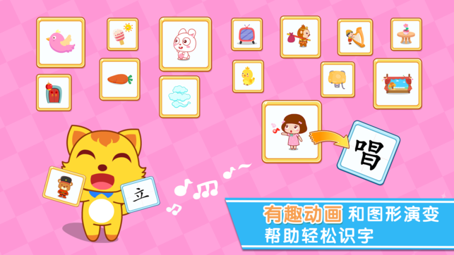 貓小帥學(xué)漢字app從小朋友的認(rèn)知角度出發(fā),結(jié)合小朋友記憶方式特點,將現(xiàn)代漢字和象形文字結(jié)合起來,形變成具體生動的日常物品——漢字“一”是一根胡蘿卜,漢字“飛”變成了飛翔的小鳥,這樣一來,學(xué)習(xí)漢字變成了一件很有意思的事情!當(dāng)更多的漢字魔力展現(xiàn)在眼前,相信小朋友會對這些漢字形成深刻的記憶!