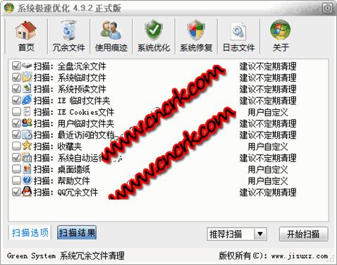 系統(tǒng)極速優(yōu)化 V4.9.2 簡(jiǎn)體中文綠色免費(fèi)版 系統(tǒng)極速優(yōu)化主要用于刪除系統(tǒng)冗余文件、清理用戶使用痕跡、注冊(cè)表優(yōu)化,注冊(cè)表修復(fù)等等,本軟件特色功能在于,可以修復(fù)互聯(lián)網(wǎng)上常見系統(tǒng)問題,就算用戶的系統(tǒng)被惡意修改注冊(cè)表,或中了常見的病毒,而被禁用系統(tǒng)里的某些功能,本軟件都能幫用戶修復(fù)好