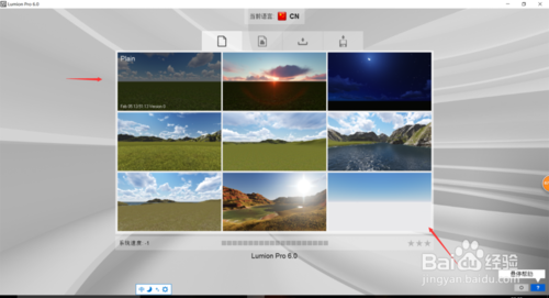 確定語(yǔ)言之后我們即可進(jìn)行Lumion場(chǎng)景的選擇,在起始頁(yè)面中,Lumion系統(tǒng)自帶有很多的場(chǎng)景可以選擇,每一種都各具特點(diǎn),最后一種為“白色場(chǎng)景”,適合后期PS大規(guī)模處理。