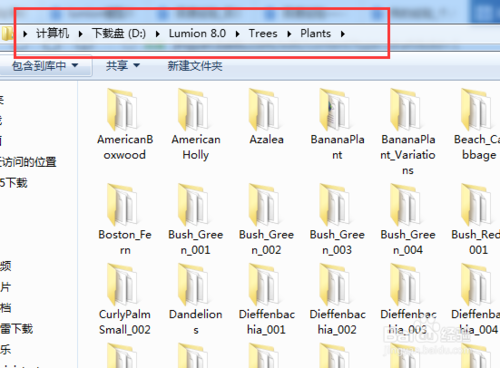 本文以lumion8.0為例,把植物素材放到lumion安裝文件夾下:如小編的lumion安裝在D盤(pán),則目錄為:D:\Lumion 8.0\Trees\Plants (注意復(fù)制的時(shí)候,植物素材庫(kù)文件夾名字必須是字母,避免報(bào)錯(cuò)),如圖2,小編示范把putishu這一植物素材的文件放到該路徑下。