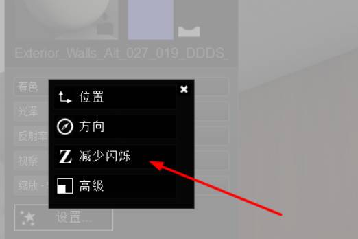 如果模型中,有圖元重合的部分,如柱與墻重合,梁與墻重合等,賦予材質(zhì)時(shí),就會(huì)出現(xiàn)閃爍,解決辦法有兩種,第一是利用插件修改模型,第二是修改lumion材質(zhì),點(diǎn)擊設(shè)置點(diǎn)擊減少閃爍,拖動(dòng)滑塊,調(diào)整.