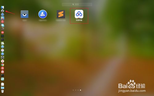 3、點擊dock上面的啟動臺圖標找到百度網(wǎng)盤圖標點擊一下啟動它,接著在圖二點擊下一步。