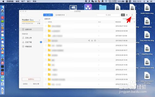 2、然后如果你的百度網(wǎng)盤多了新的東西,要先點擊右上角的符號更新一下。百度網(wǎng)盤默認的排列方式為列表形式的,若要切換則點擊圖二的位置。
