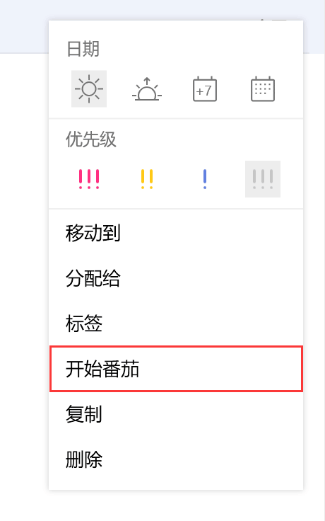 在任務列表右鍵菜單中開始番茄,或者點開任務詳情頁右下角菜單中開始番茄即可。