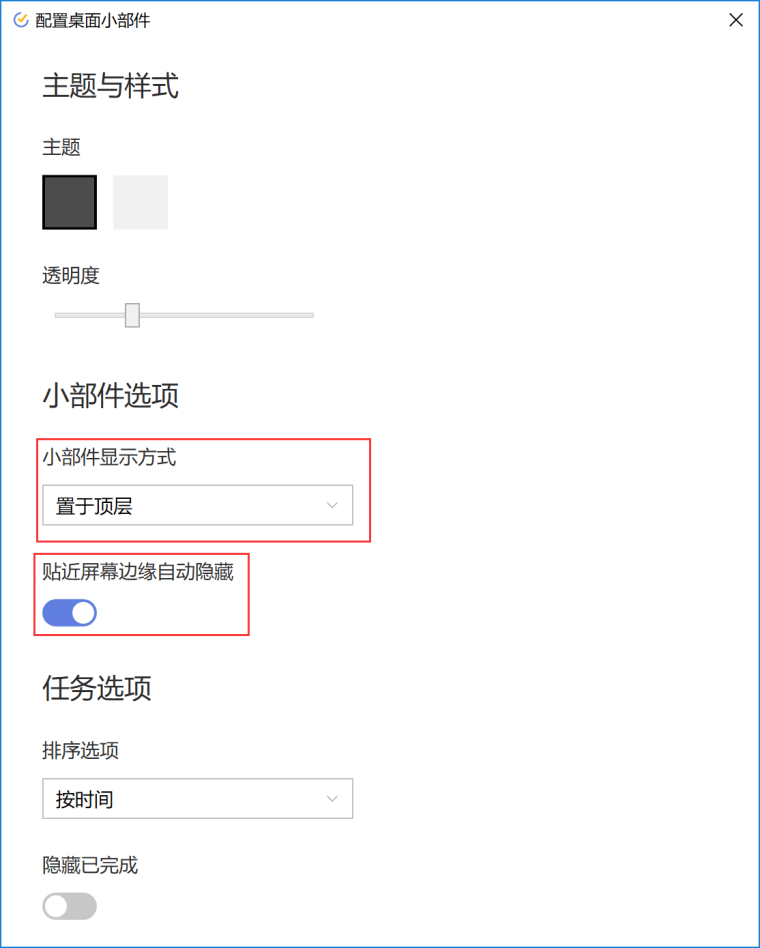 點擊小部件設置,然后選擇置頂,開啟貼邊自動隱藏選項。