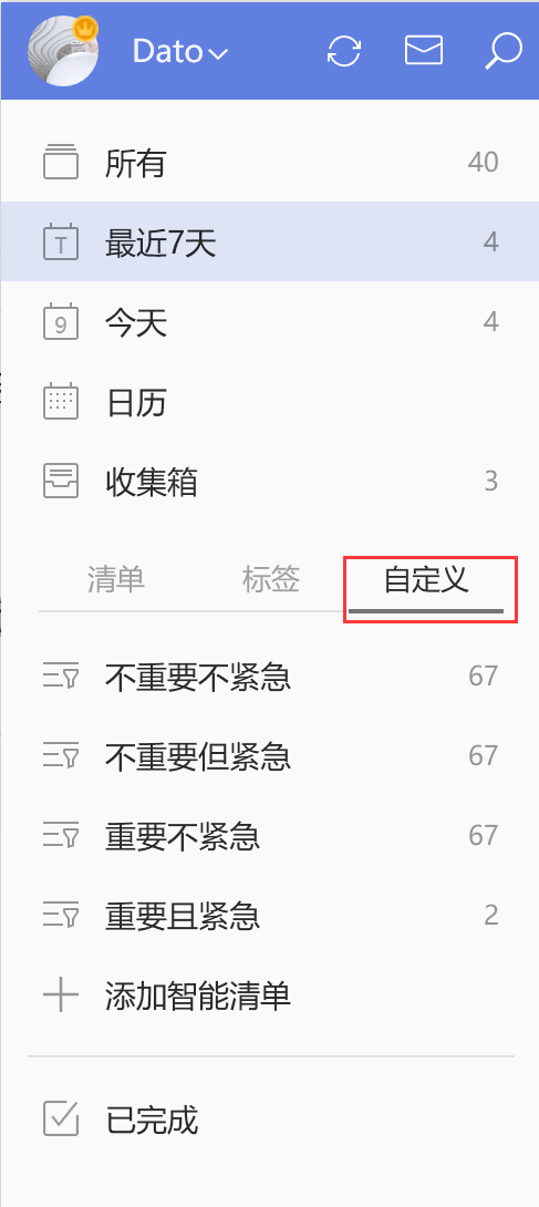 清單的類型智能清單:滴答清單的默認清單,如【今天】【明天】【最近七天】【收集箱】等;