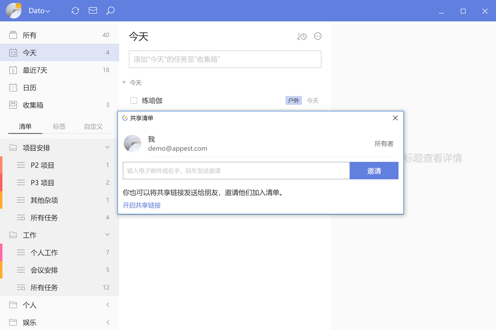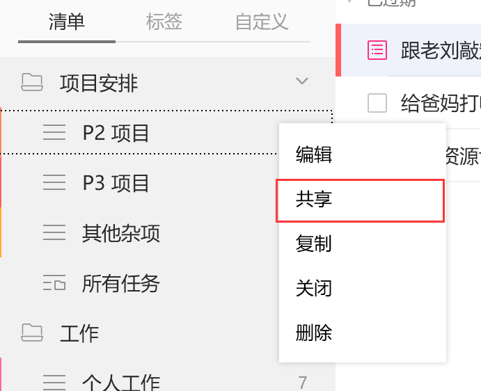 您可以通過共享功能,將自己的清單與其他人進行共享,協(xié)作完成任務。